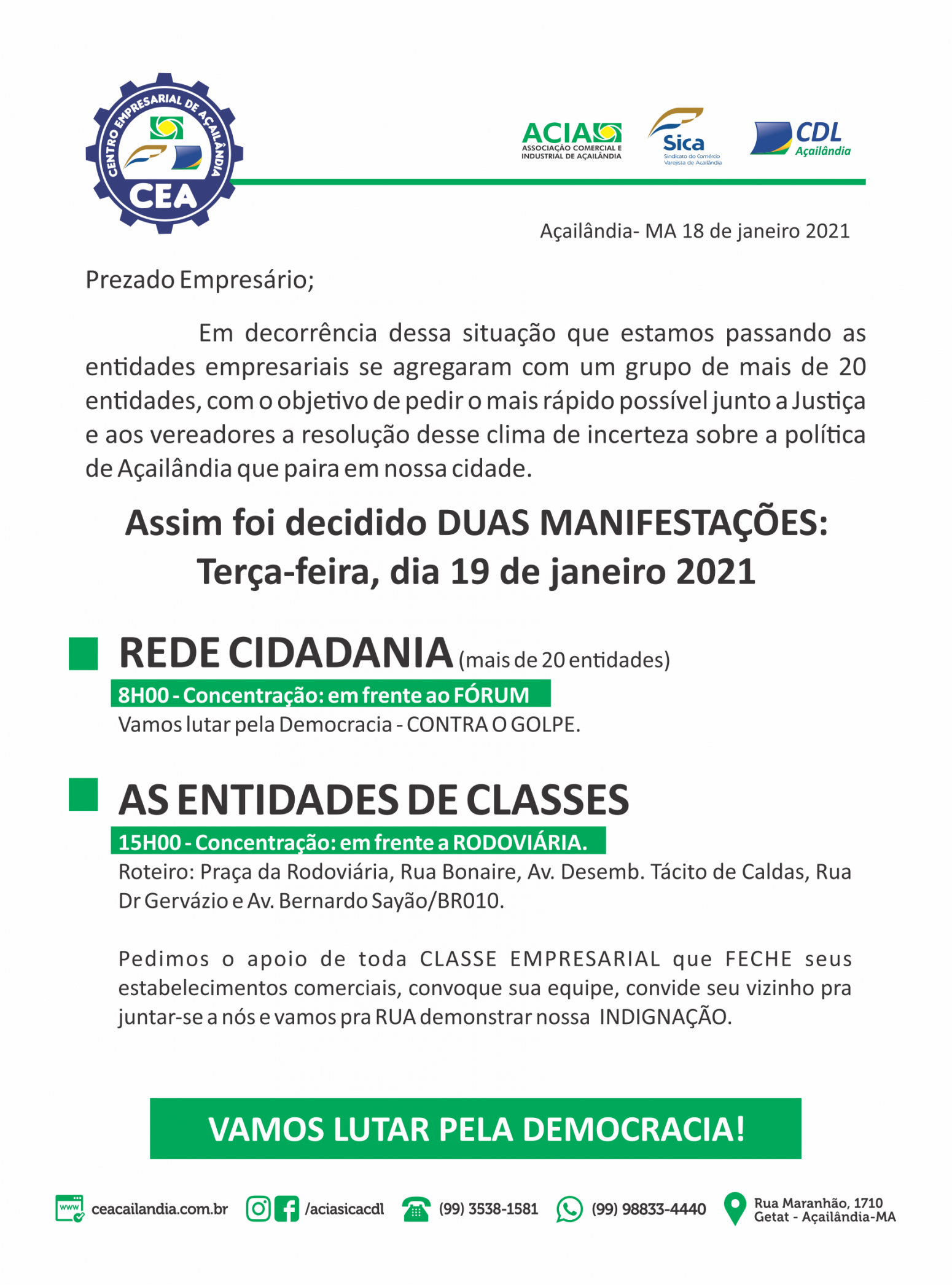 VAMOS LUTAR PELA DEMOCRACIA!